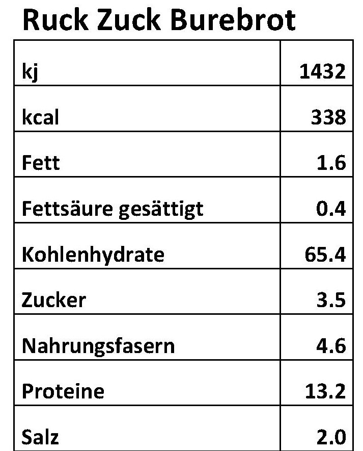 Zutaten: WEIZEN, ROGGEN, Malzmehl (GERSTE), MILCHpulver, Kartoffelflocken, Guarkernmehl, WEIZENkleber, Trockenhefe, Salz, Vitamin C.